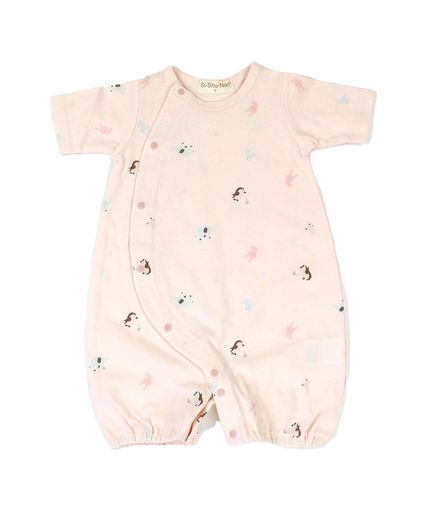天竺素材で、股下の中心はお着替えしやすいよう配色ボタン