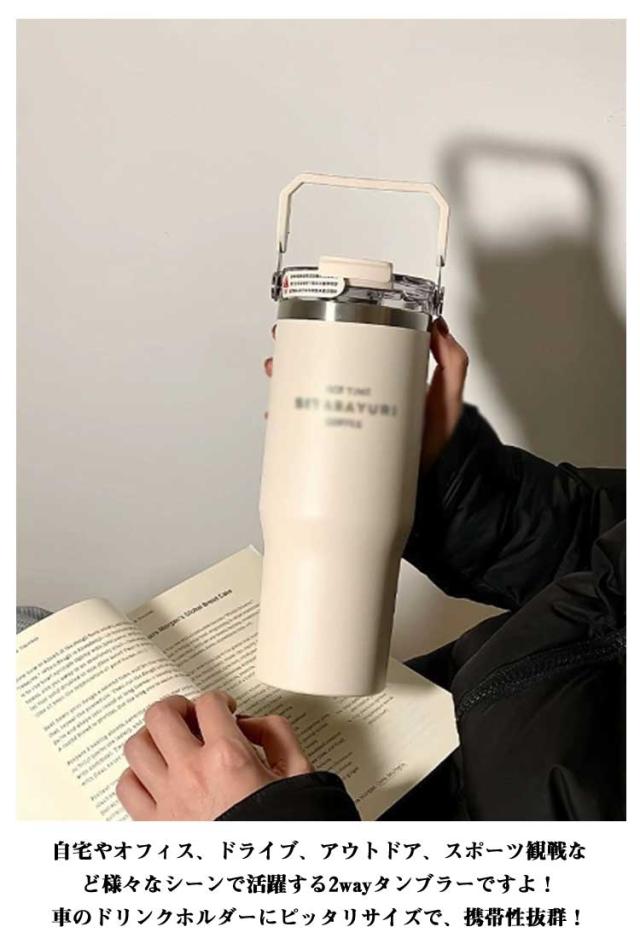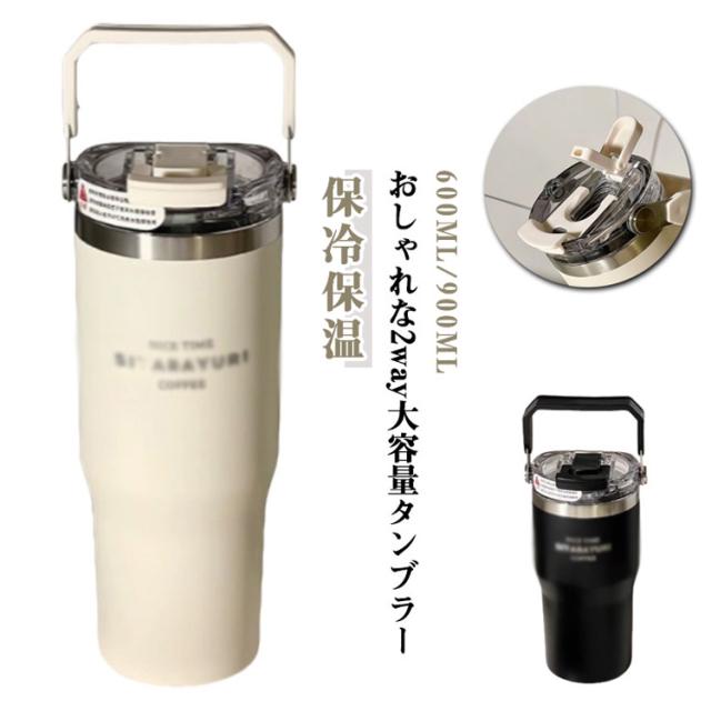 持ち手付き タンブラー ストロー付き 600ml 900ml 保冷 保温 大容量 保冷タンブラー 直飲み 2way 持ち運び こぼれない 蓋付き タンブラー 保温 保冷 おしゃれ 水筒 コーヒー 大容量 オフィス ステンレス マグ ジョッキ アウトドア