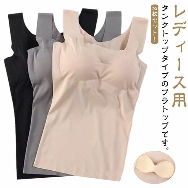 送料無料 2枚セット ブラトップ レディース 女性用 インナー 下着 カップ付き タンクトップ ノンワイヤー シームレス カップ取り外し可能 胸パッド付 アンダーゴムなし リラックス 無地 シンプル 響きにくい 下着 肌着 普段使い 肌色 ブラック グレー ピンク