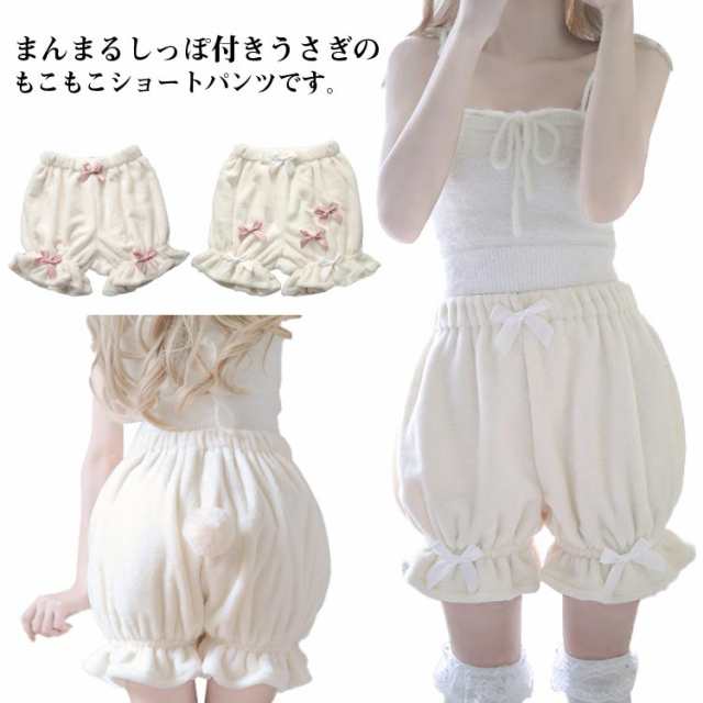 ふわふわ可愛いしっぽ付き!ふんわり ショートパンツ カボチャパンツ 秋冬用 短パン 起毛 防寒 ルームパンツ インナーパンツ ロリィタ 見せパン ペチコート アンダースコート コスプレ