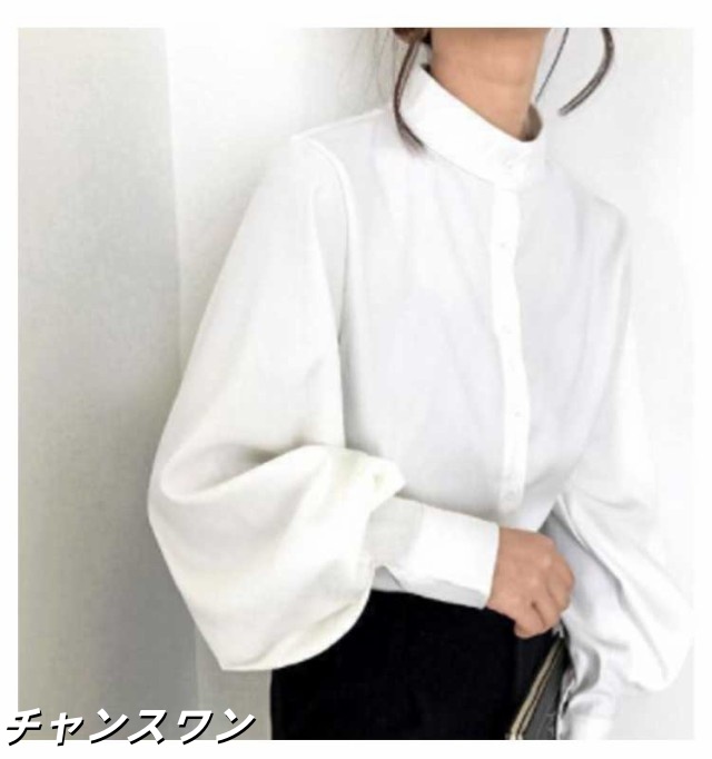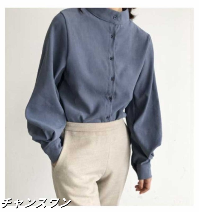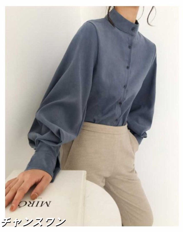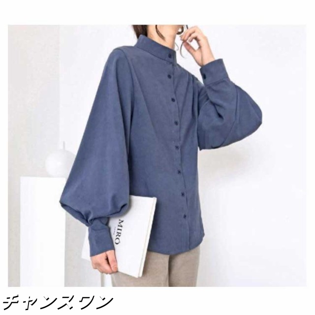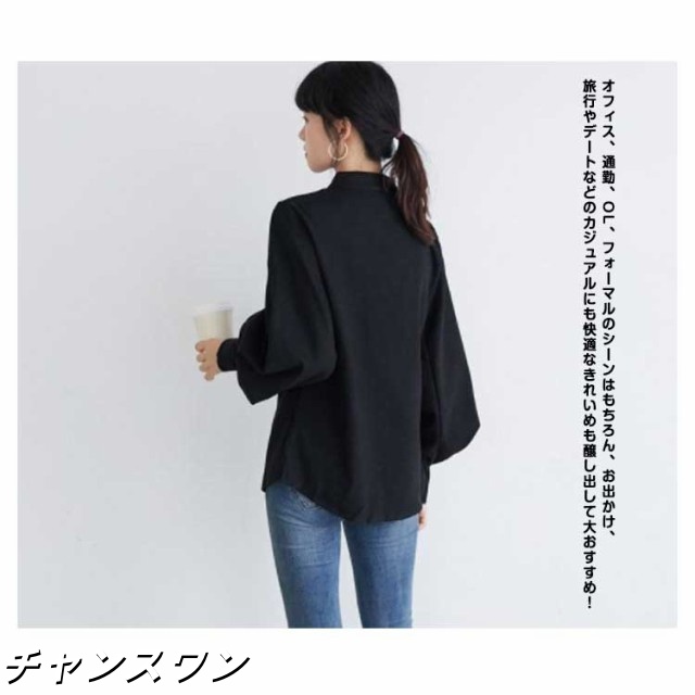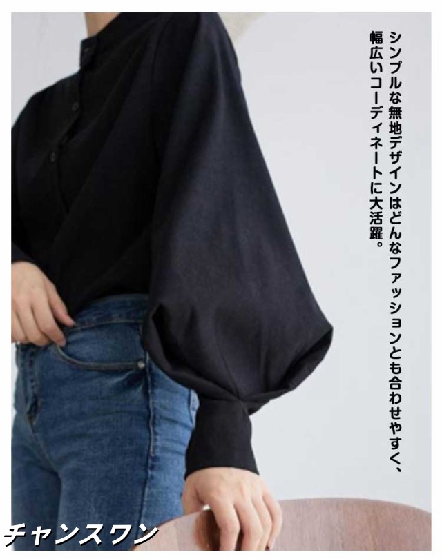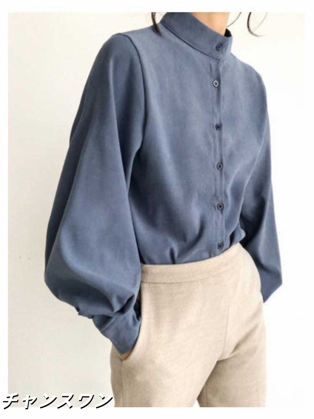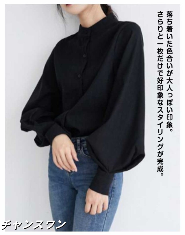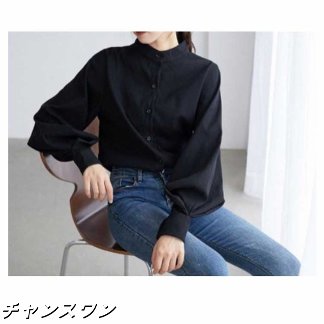 長袖 オフィス OL 春秋 無地シャツ ボリューム袖 キレイめ トップス シャツ レディース インナー 女性用 カジュアル 普段着 通勤 スタンドカラー ブラウス 上品 おしゃれ 着痩せ フォーマル 体型カバー ゆったり