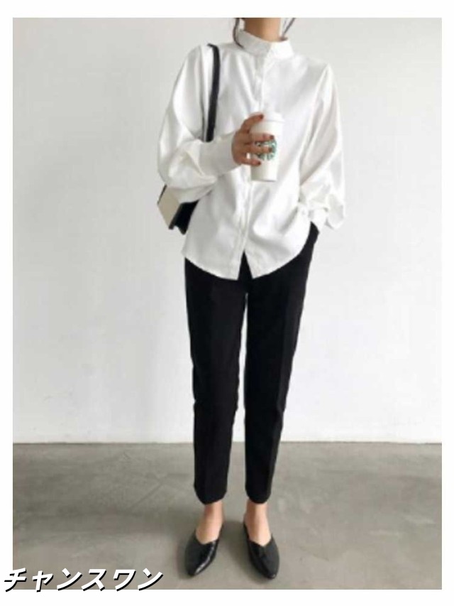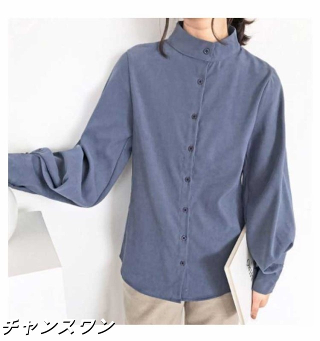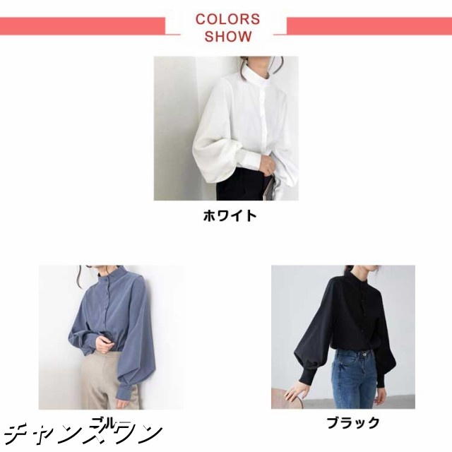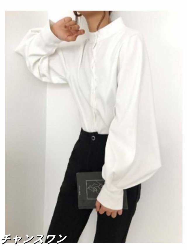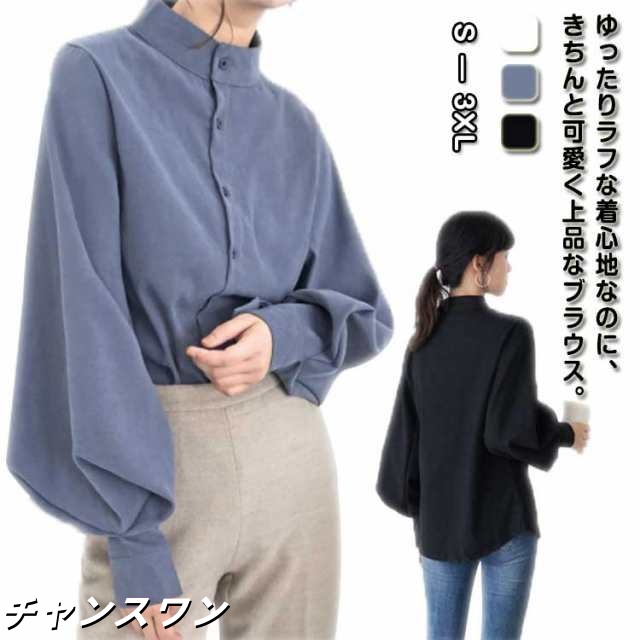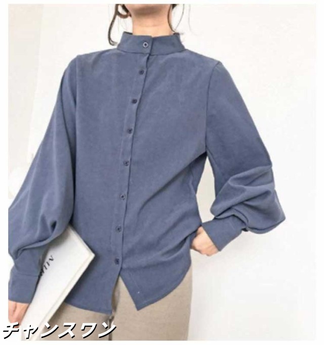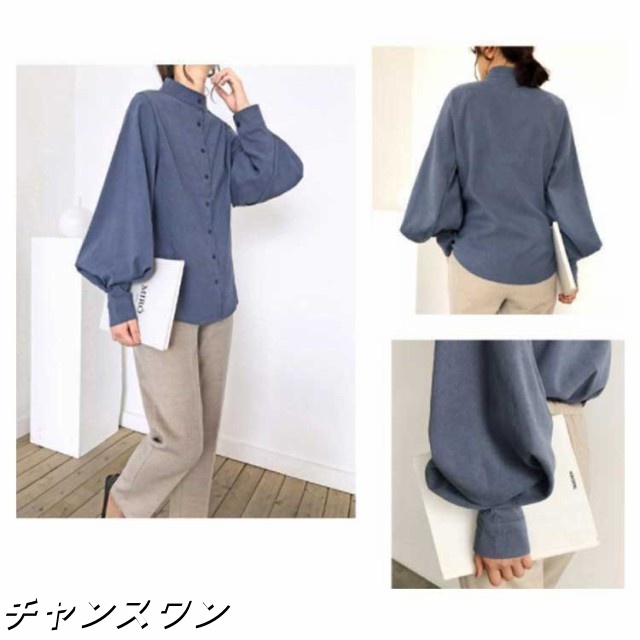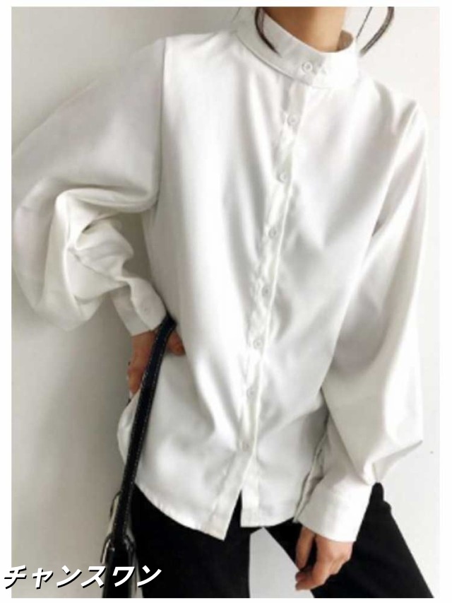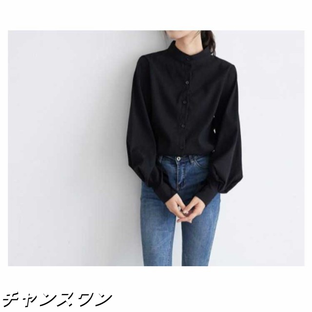 長袖 オフィス OL 春秋 無地シャツ ボリューム袖 キレイめ トップス シャツ レディース インナー 女性用 カジュアル 普段着 通勤 スタンドカラー ブラウス 上品 おしゃれ 着痩せ フォーマル 体型カバー ゆったり