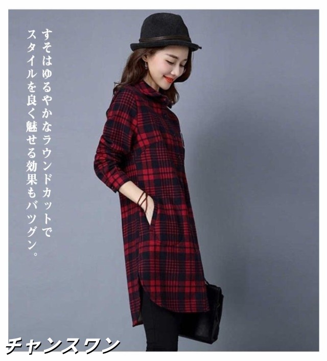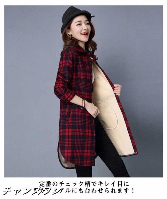 ロングシャツ チェック 裏起毛 ボア シャツ レディース 秋冬 チュニック アウター 長袖 厚手 フランネル 羽織 ロング丈 暖かい チェック柄 ジャケット ボタン 裏フリース チェックシャツ 暖かい カジュアル おしゃれ 大きいサイズ 送料無料