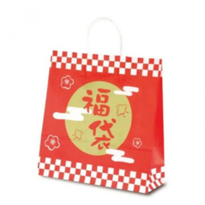 商品詳細:初売りを盛り上げてくれること間違いなしのふくまるは、金色のサークルとメリハリある市松模様の組み合わせが人目を惹きつけます。 生産国:日本 素材・材質:片艶 商品サイズ:巾320×マチ110×丈330mm セット内容:50枚