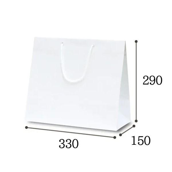 商品詳細:卒入学などの式典やブライダル、アパレル業界向けで活躍する高級感ある手提袋です。紐穴補強(ハトメ)もあり丈夫です。表面グロス(光沢)PP貼。 生産国:中国 素材・材質:コート 商品サイズ:巾330×マチ150×丈290mm セット内容:10枚