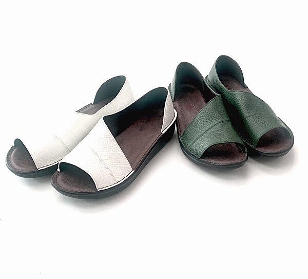 日本製 本革 サイドオープンサンダル レザーサンダル 幅広 3e 4e 外反母趾 オープントゥ パンプス セパレートパンプス 歩きやすい 痛くない レザー コンフォートパンプス
