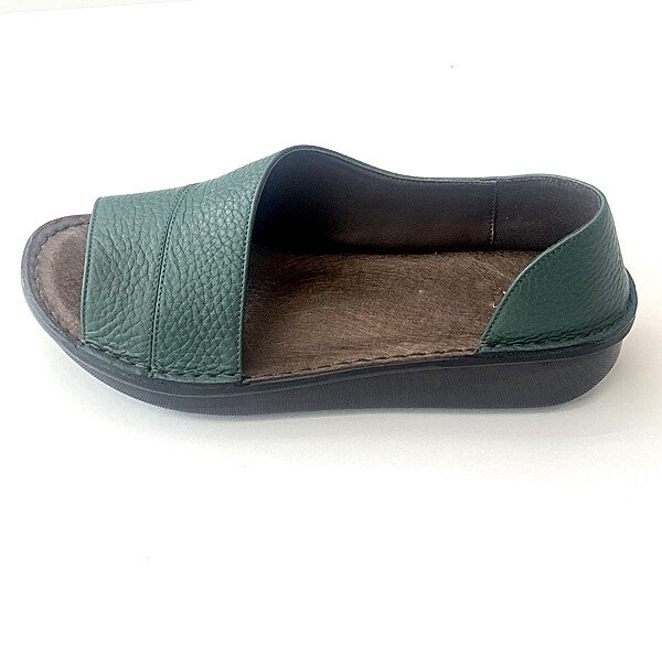 フラットヒールで歩きやすく、インソールは足裏に合う立体形状で柔らかく心地よい履き心地です。
