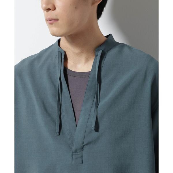 シャツでありながら、アノラックのような抜け感を持つ、モダンで新しいプルオーバーシャツ。スキッパータイプの胸元が自然なヌケ感を生み、リラックスしながらも都会的な印象で着用できる1枚です。