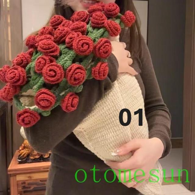 ブーケブランケット、TikTok人気商品抱き毯、ローズブランケットフラワーブランケット、マルチカバー手編み、ローズブランケットプレゼント母の日60cm