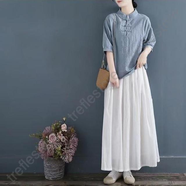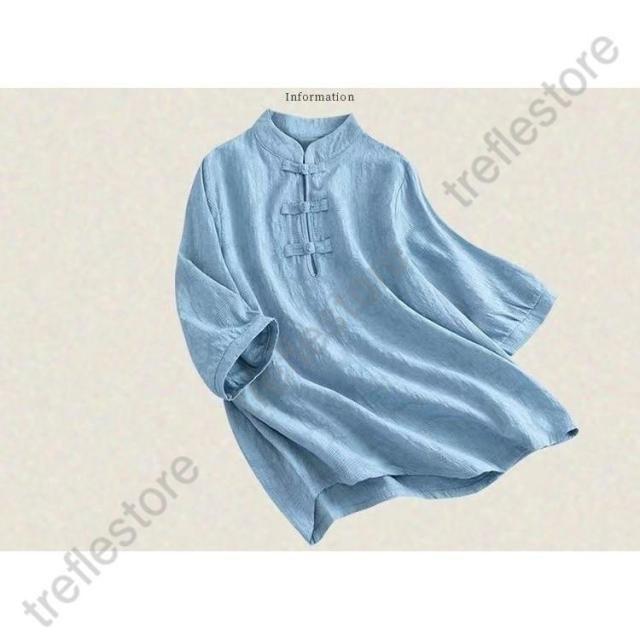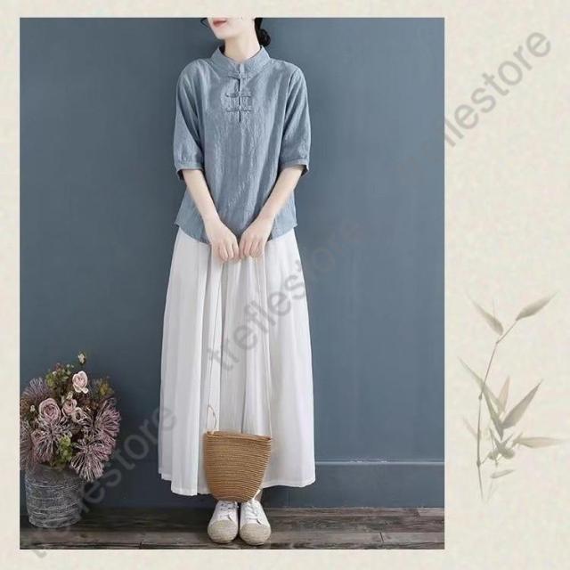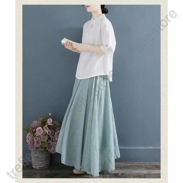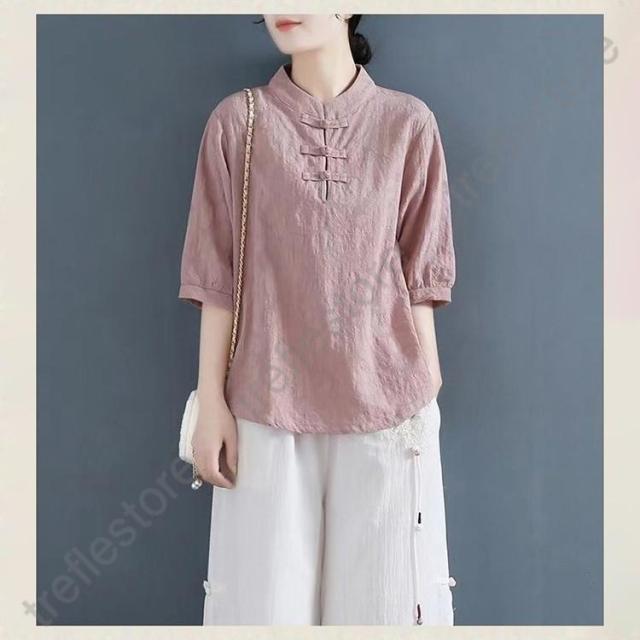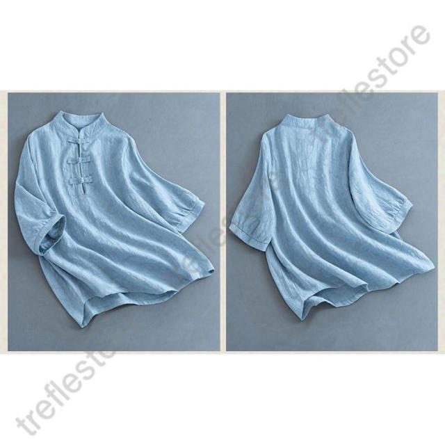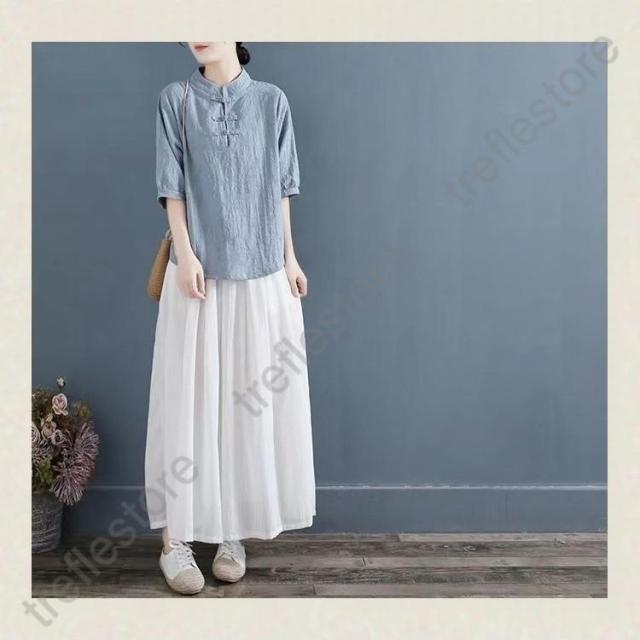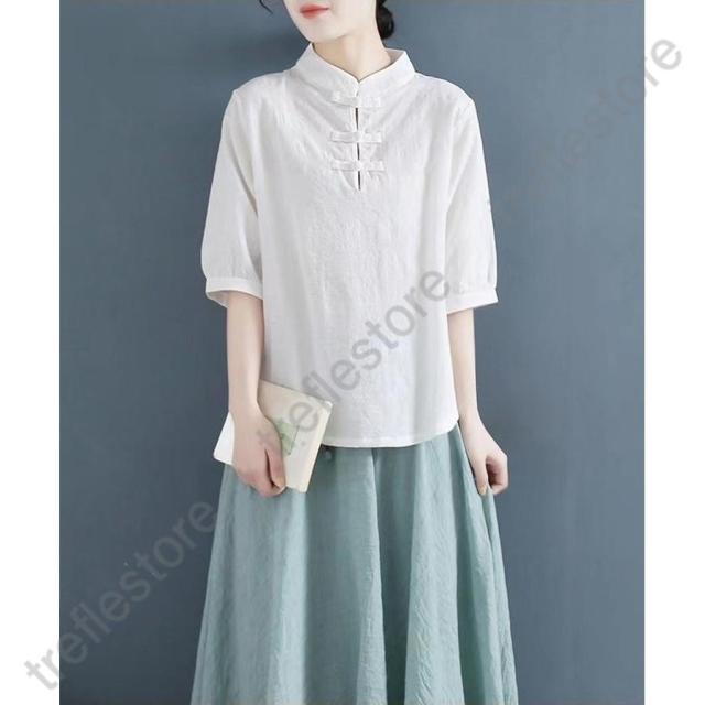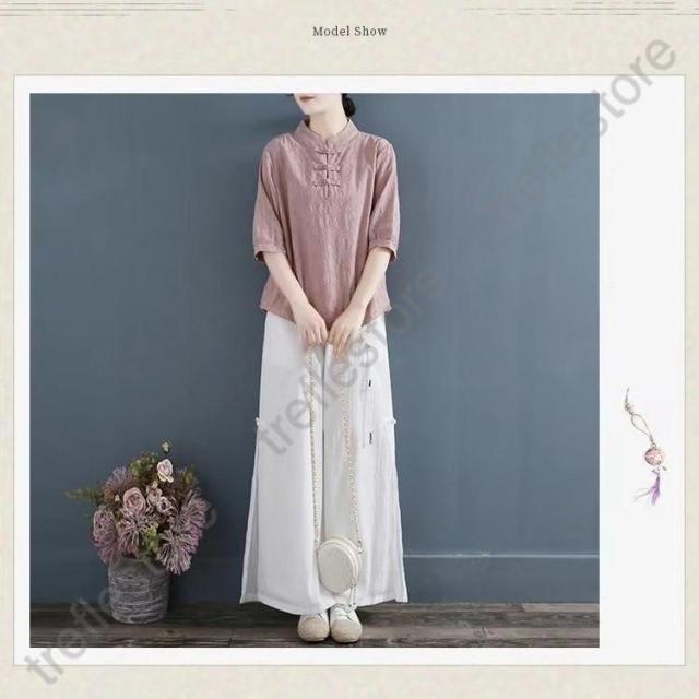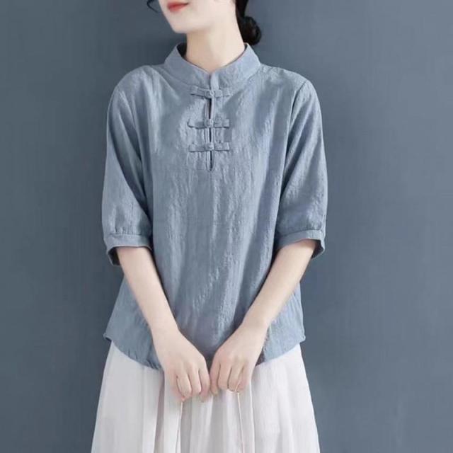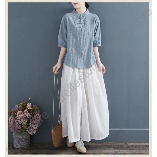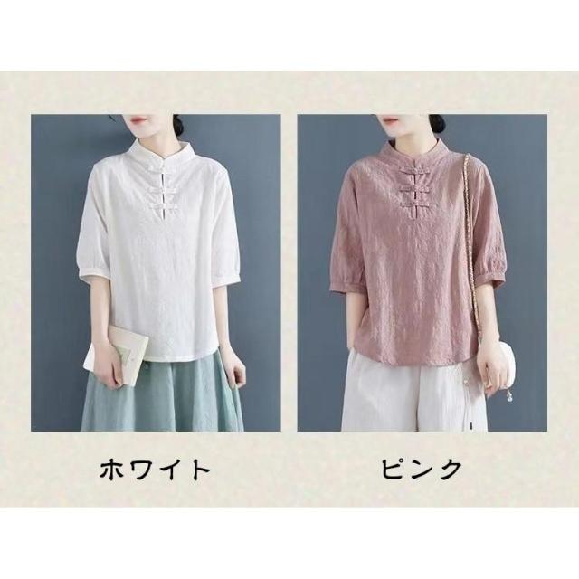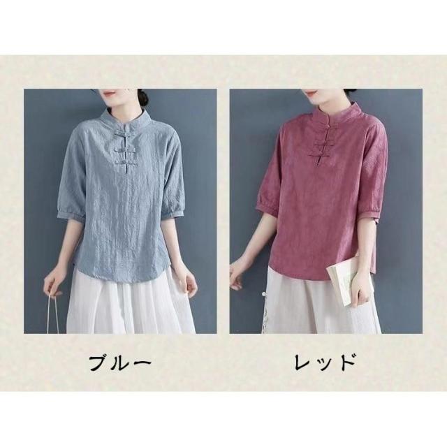 【ポイント5倍!】チャイナドレス風シャツ 半袖ブラウス 6色 太極拳服 朝練 武術服 チャイナ風 リネン 春秋 レディース スリット 綿麻 中国風