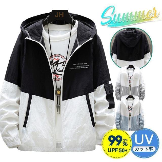【ポイント5倍!】カーディガン メンズ サマー トップス 夏 長袖 フード付 配色 薄手 uv 日焼け止め 暑さ対策 軽量 ルームウェア 海 通学 通勤 長め 年配 スポーツ カジュアル