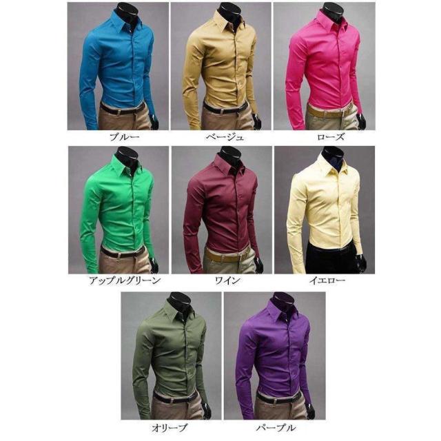 【ポイント5倍!】ワイシャツ メンズ 長袖 Yシャツ ビジネス シャツ スリム 無地 カラフル フォマール 春 秋 秋服 通勤 紳士服