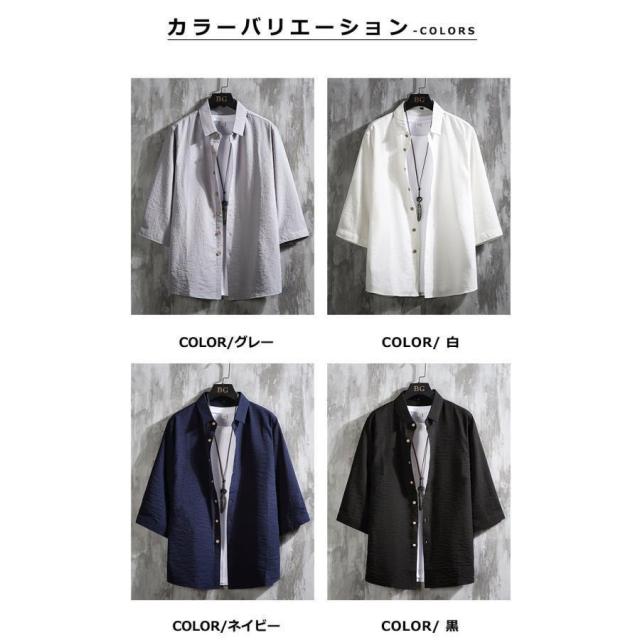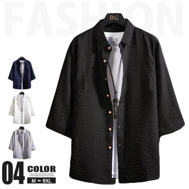 【ポイント5倍!】七分袖シャツ メンズ 夏服 無地シャツ カジュアルシャツ 7分袖 涼しいシャツ 無地 大きいサイズ 薄手 大きいサイズ 通勤 20代 30代 40代 50代