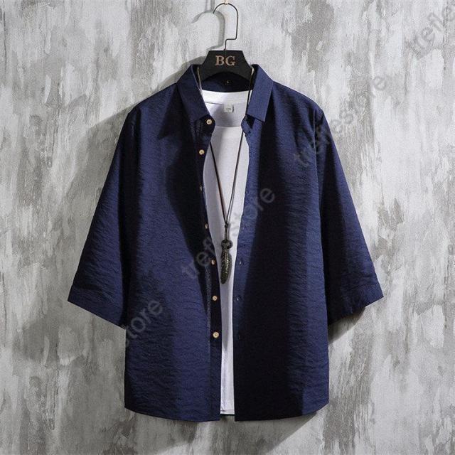 七分袖シャツ メンズ 夏服 無地シャツ カジュアルシャツ 7分袖 涼しいシャツ 無地 大きいサイズ 薄手 大きいサイズ 通勤 20代 30代 40代 50代