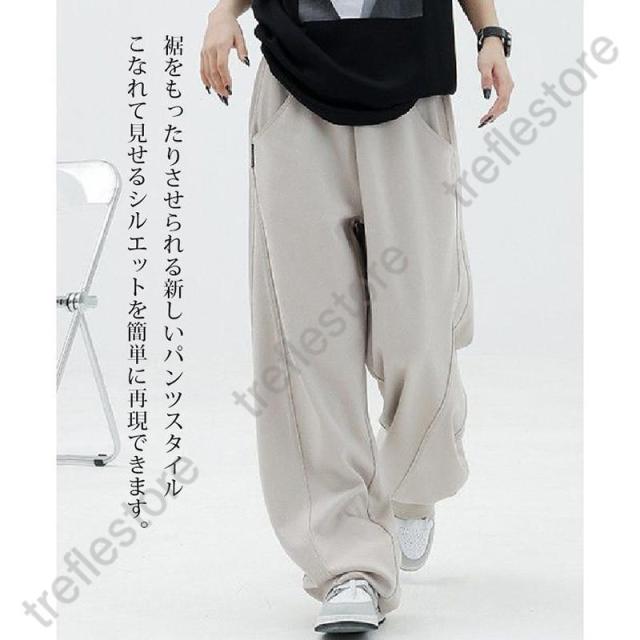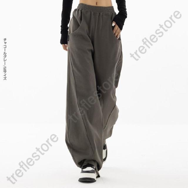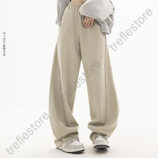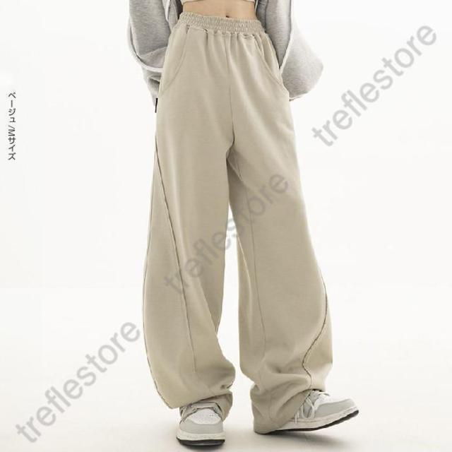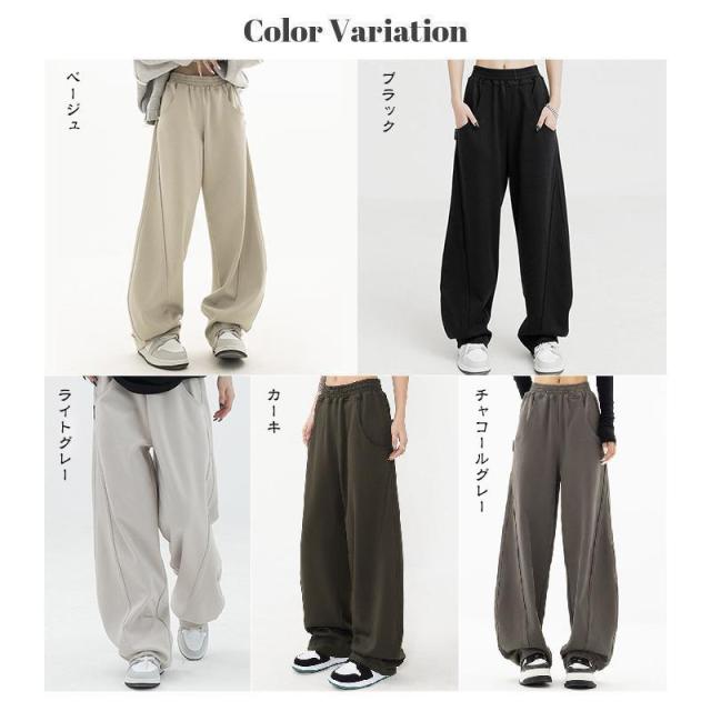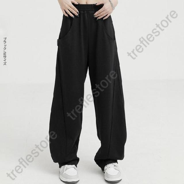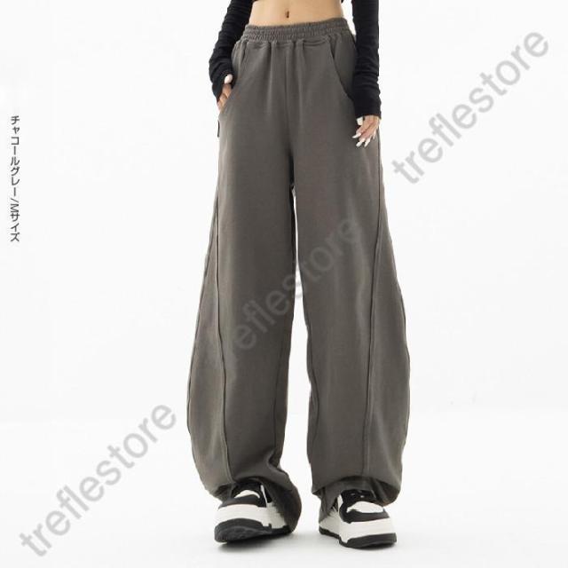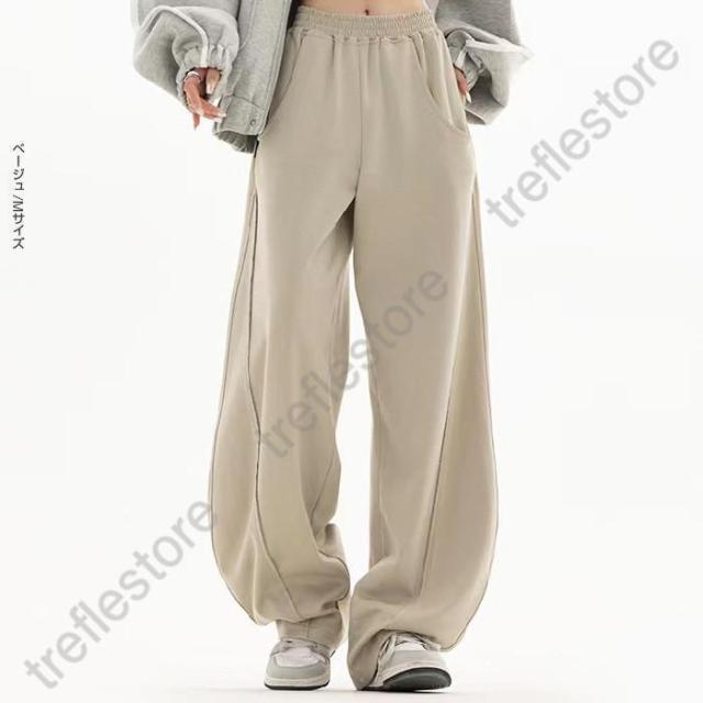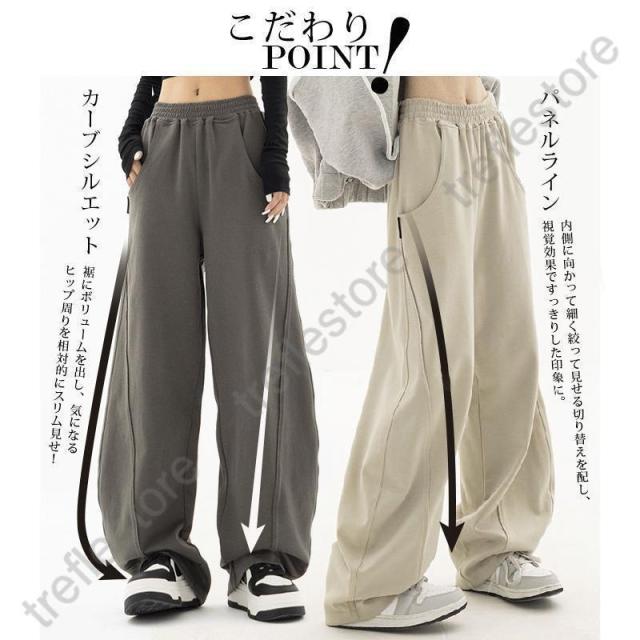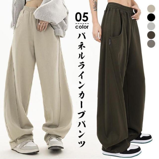 【ポイント5倍!】パネルラインカーブパンツ カーブパンツ バレルバッグ レディース ワイド パンツ ワイドパンツ スウェット ウエストゴム ゆったり