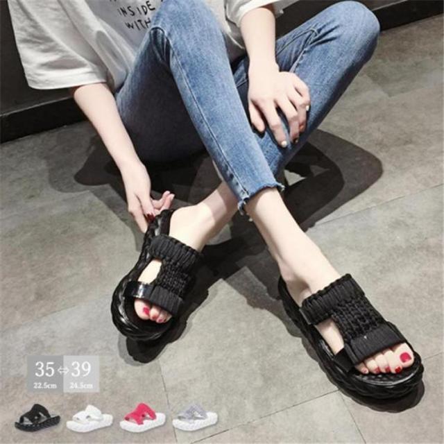 【ポイント5倍!】厚底サンダル メッシュ ニットサンダル