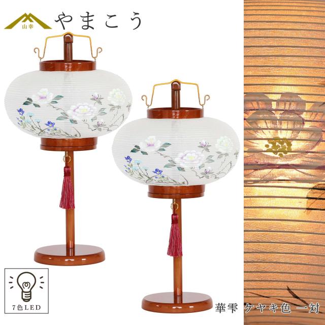 盆提灯 初盆 新盆 モダン 仏具 一対 セット 岐阜の誉れ シリーズ 華雫 ケヤキ色 ミニ 小型 2種類の明かり LEDレインボー & ローソク灯 木製 絹張 和 行灯 提灯 仏壇 仏花 贈り物 (代引き決済不可商品)