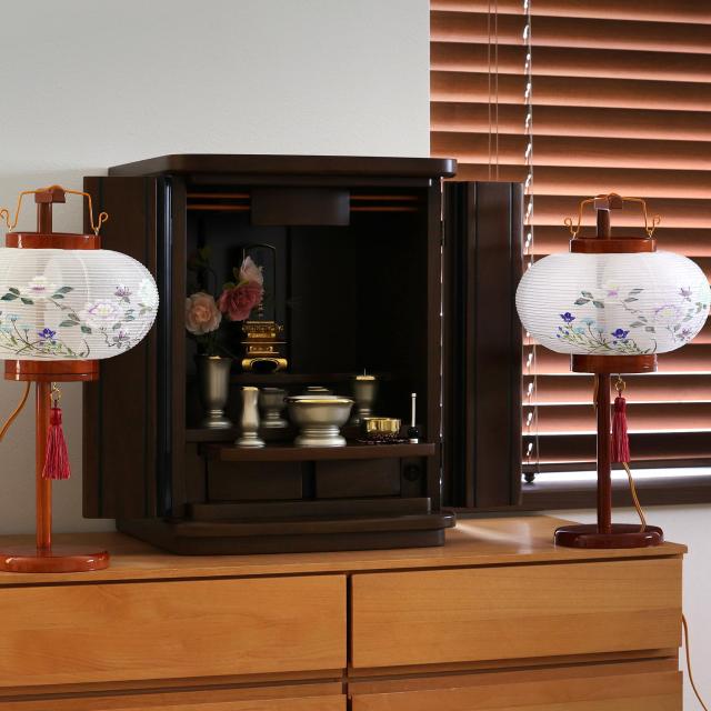 コンパクトで、仏間・和室はもちろん、インテリア仏具としても違和感なく飾ることができる、新しいかたちの提灯です。