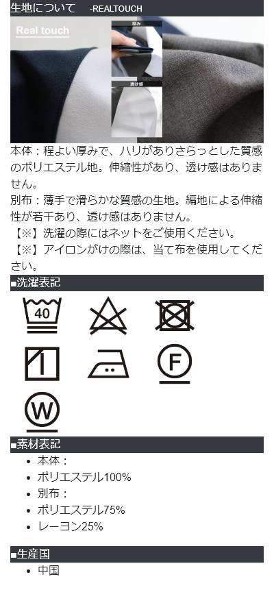 [素材]本体:ポリエステル100% 別布:ポリエステル75% レーヨン25%