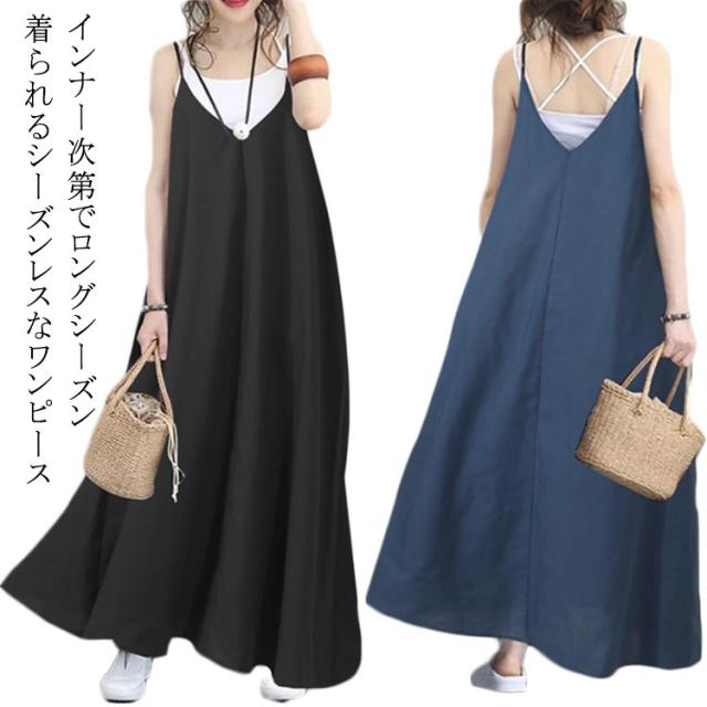 キャミワンピース マキシ丈 キャミ ワンピース キャミソールワンピース 重ね着 ロング丈 着回し キャミソール ロングワンピース マキシス丈 レイヤード きれいめ Aライン ノースリーブ