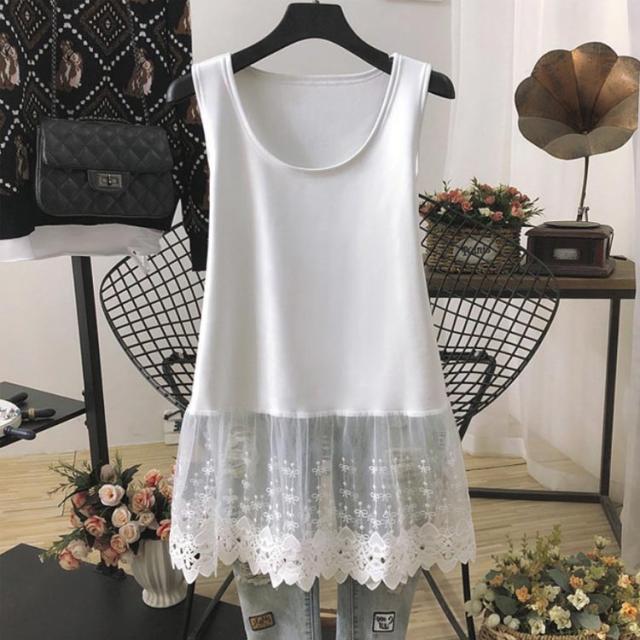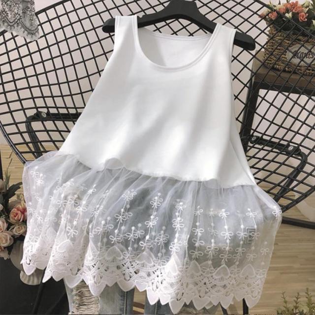 裾見せ タンクトップ レース切り替え レディースファッション 豊富な品揃え ホワイト/薄手 ホワイト/厚手 M L XL 2XL 3XL 4XL
