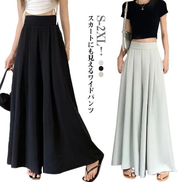 S-2XL!スカートにも見えるワイドパンツ