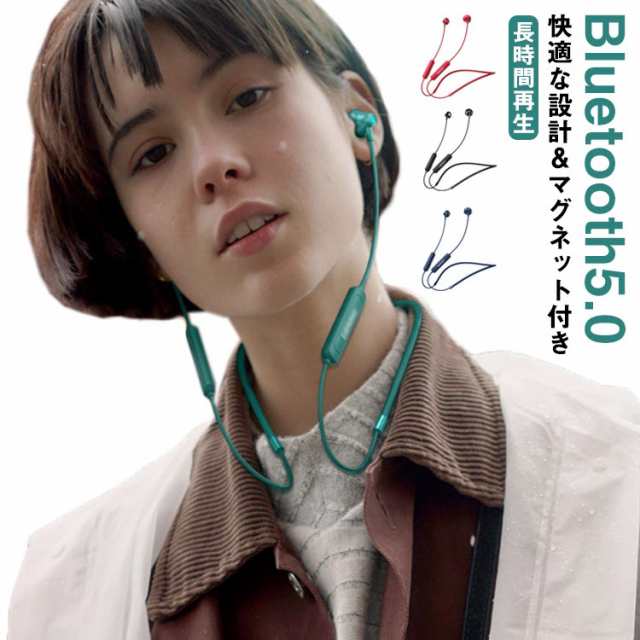 インナーイヤー型 ネックバンド型 ランニング マイク付き イヤホン 首掛け 重低音 耳から落ちない マグネット付き 高音質 ワイヤレスイヤホン 自動ペアリング 防水 両耳 ブルートゥース bluetooth5.0 ノイズキャンセリング 通勤 自転車 スポーツ イヤフォン