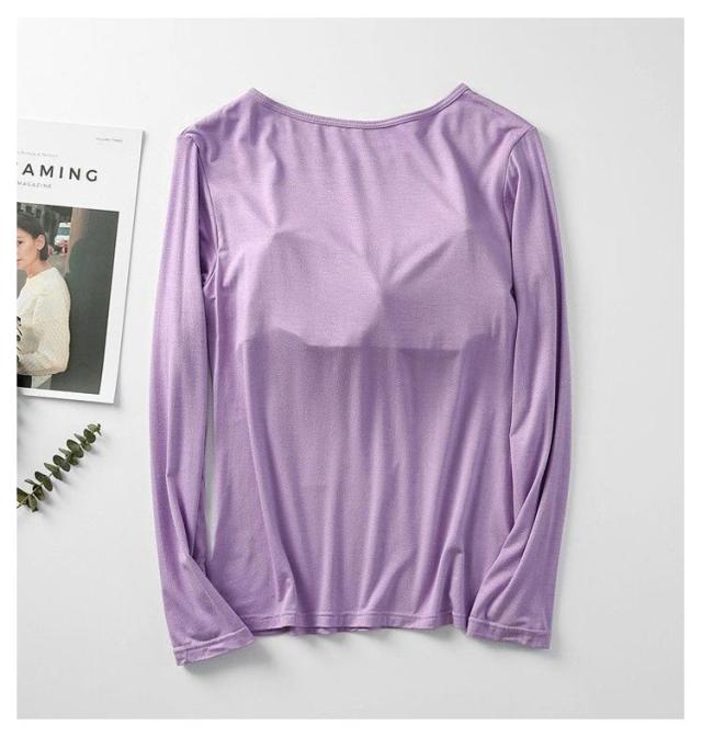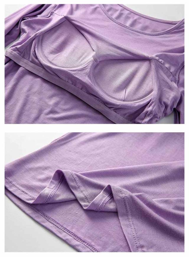 前のみ パット付長袖Tシャツ ブラトップ アンダーフリー カップ付き ゴムなし ロンT 長袖 カップ付きTシャツ パッドのみ パット付長袖Tシャツ 固定 ルームウェア カップ付き インナー アウター 大きいサイズ tシャツ
