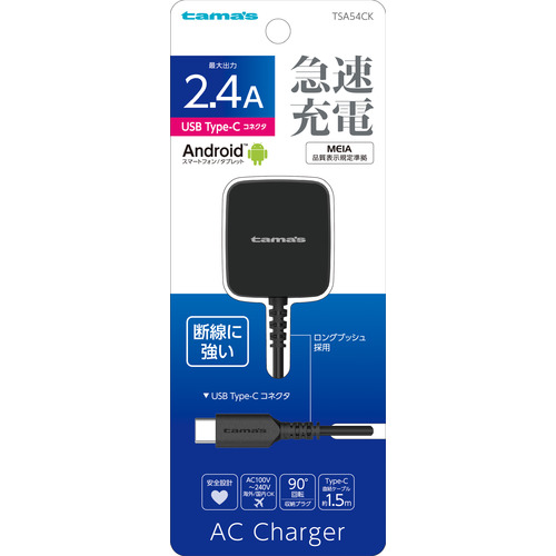 多摩電子工業 Type-C コンセントチャージャー2.4Aケーブル直結型 BK TSA54CK