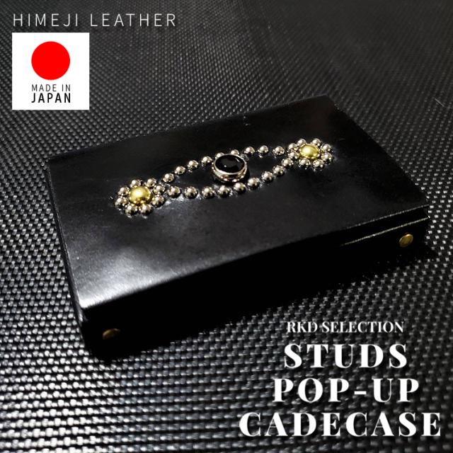 【フタを引っ張るだけ】本革 USAスタッズ カスタム 名刺入れ 日本製 姫路レザー 引き上げ ベジタブルタンニン 牛革 本革 無縫製 立体構造 マグネット カードケース 名刺ケース 1ts-400-sc