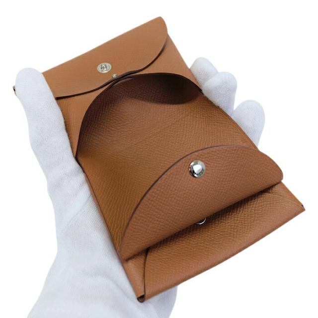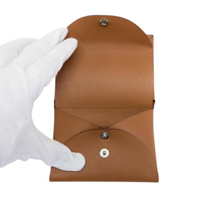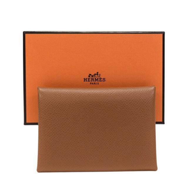 【SAランク】 エルメス HERMES カルヴィ デュオ エプソン (レザー) W刻印 (2024年) カードケース コインケース コンパクトウォレット 二つ折り財布 ミニ財布 マルチケース ゴールド (ブラウン) 正規品 極美品 中古 mbm15003