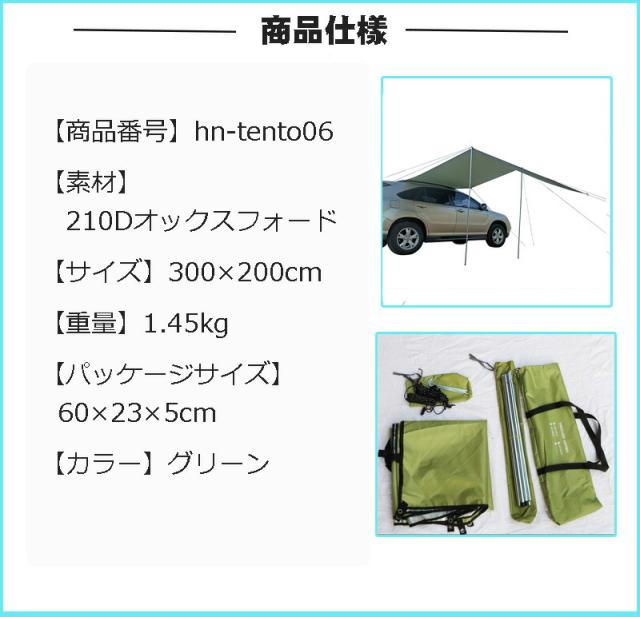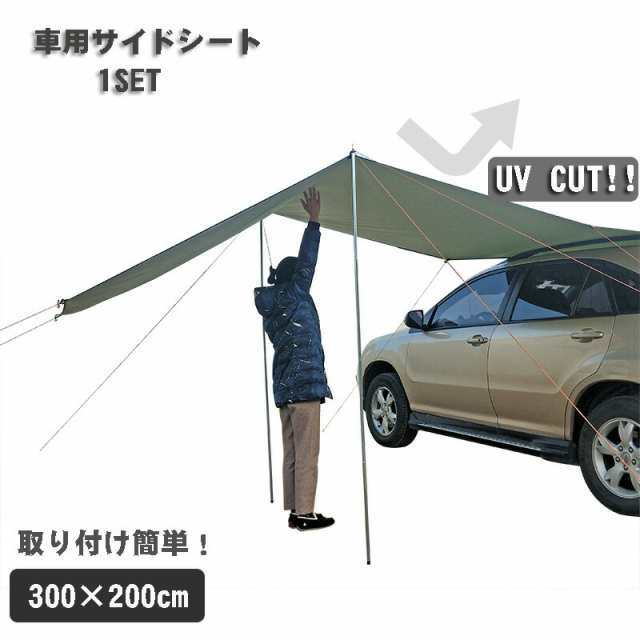 風に強いテントレーション!車用 テント 3m 4段階調節 UVカット 耐水 スチール キャンプ アウトドア 耐水 テント キャンプ用品 ワンタッ