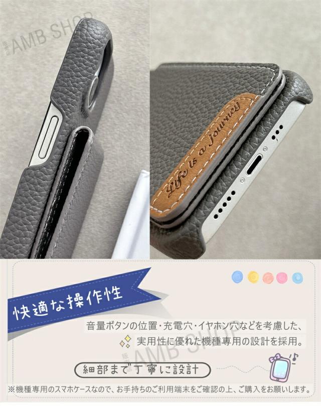 レザー製背面ケースなので付け外しも楽々、衝撃もしっかり吸収し大切なスマホを保護します。