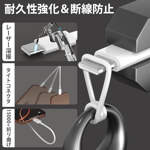 【超強靭なTPE素材・柔らかい手触り】iPhoneケーブルの外側には耐摩耗性に強くて、絡まりにくいTPE素材を採用し、内部には強靭かつ導電性に優れるグラフェンで銅線を覆うことで、一般的な充電ケーブルより長持ちできた上に、柔軟性を持つTPE素材も環境に優しい。高耐久性と環境保護を両立したTYPE-C ケーブルで