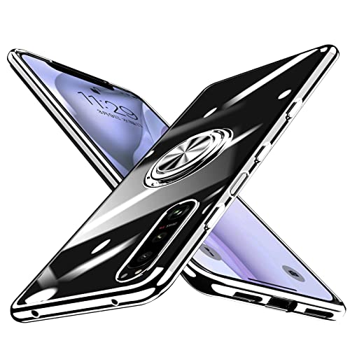 Xperia 5 III リング ケース付き クリア tpu シリコン 軽量 薄型 メッキ加工 一体型 ソフト ソニー エクスペリア 5 iii SO-53B SOG05 カバー 耐衝撃 透明 黄ばみなし 耐久 車載ホルダー対応 ストラップホール付き スタンド機能 全面保護 人気 携帯カバー 銀 ...