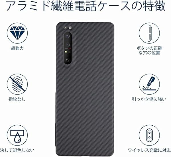 Xperia 1 V ケース アラミド繊維 SOG10 SO-51D 超薄型 指紋防止 シンプル エクスペリア1v ケース ワイヤレス充電対応 (Xperia 1 V ブラック)