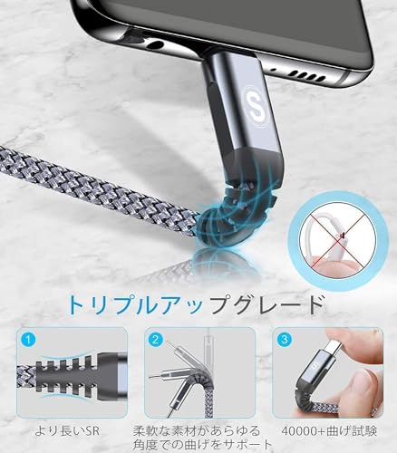 【驚きさの耐久性】:高耐久Type C ケーブル 充電ケーブルです。しかも接続口に金メッキ加工されて、時間の使用による信号劣化など心配する必要がなくて、耐食性、耐久性に優れています。