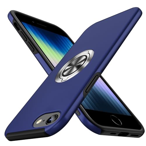 iPhone SE ケース 第2世代 / iPhone 8 ケース / iPhone 7 リング ケース 耐衝撃 tpu pc 二重構造 全面保護 一体型スマホケース アイフォン7 8ケース / アイフォンSE2 ケース(2020年モデル)衝撃吸収 シリコン 360°回転 スタンド機能 軽量 薄型 車載ホルダー対応 4.7インチ 指紋防止 人気 携帯カバー 青