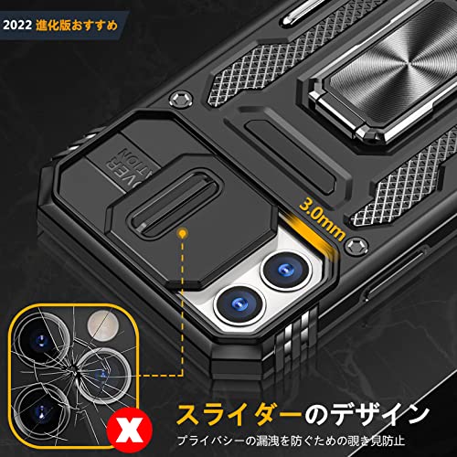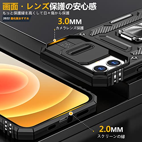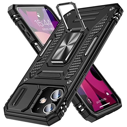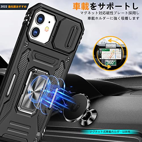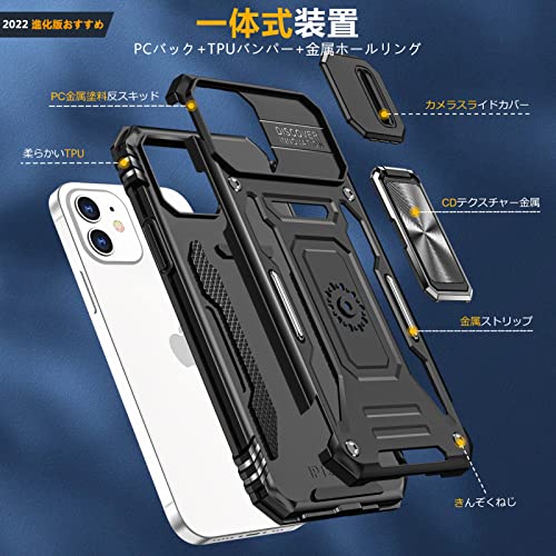 iPhone 11 リング ケース付き スライド式カメラプロテクター付き PC 耐衝撃 スタンド機能 車載ホルダー対応 擦り傷防止 滑り止め 格好いい おしゃれ 人気 アイフォン 11 カメラカバー 黒