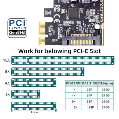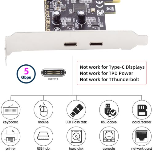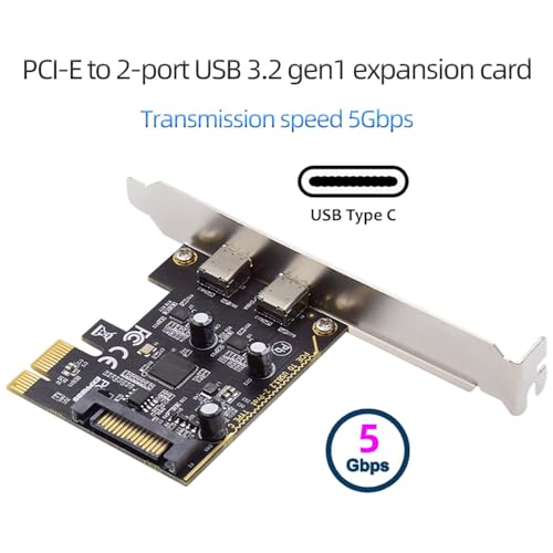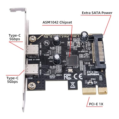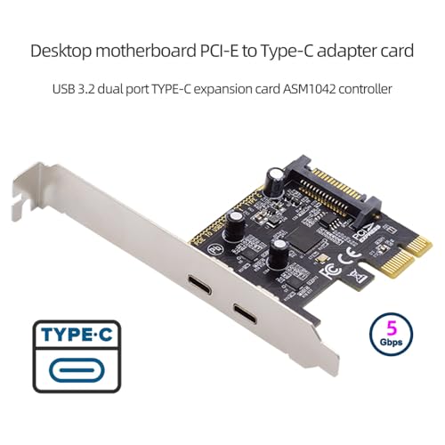 5Gbps USB3.1 Gen1 デュアル Type C USB C メス PCI-E Express 1x カードアダプター ASM1042 ロープロファイルブラケット付き