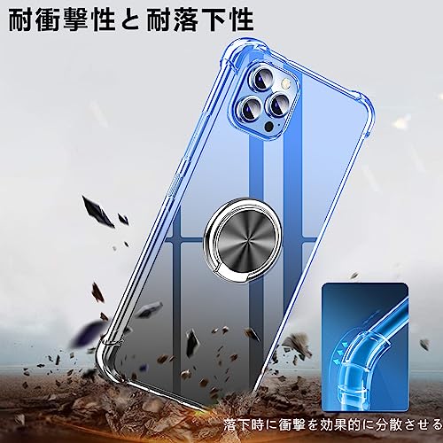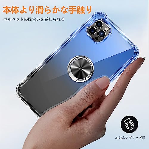 iPhone 8 Plus ケース iPhone 7 Plus リング ケース付き クリア 薄型 グラデーション色 ケース 軽量 tpu 耐衝撃 スマホケース 透明 おしゃれ 黄変防止防塵一体型 人気 車載ホルダー アイフォン8P / 7P用 携帯カバー ブルー / ブラック