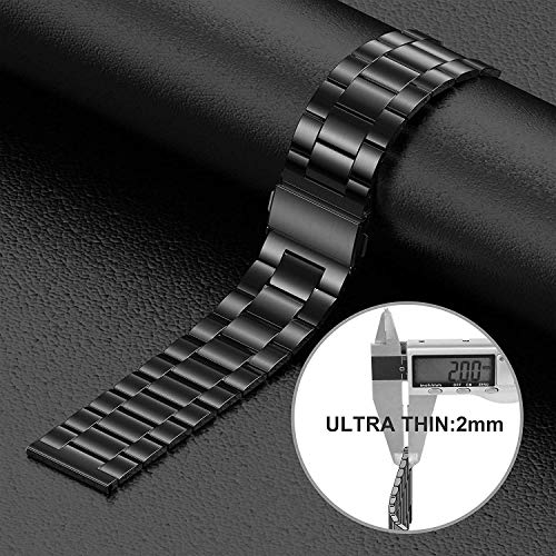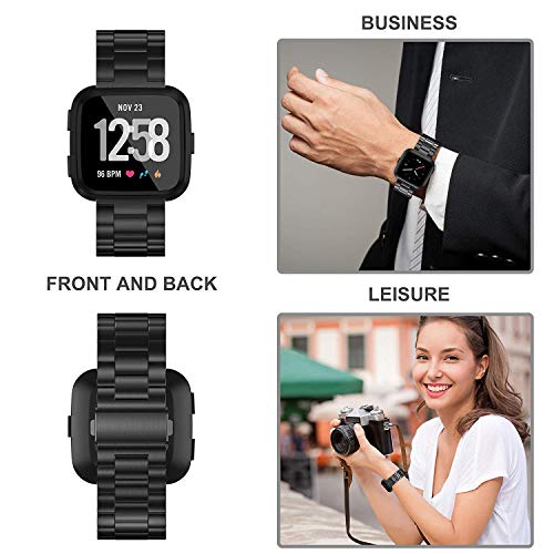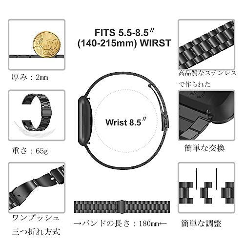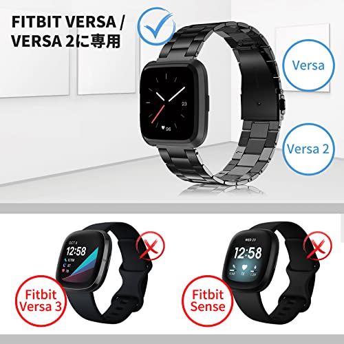 Fitbit Versa / Fitbit Versa2 バンド fitbit versa 交換バンド フィットビット Versa 軽量 ステンレス 交換用バンド Fitbit Versa スマートウォッチアクセサリー 調整工具付 (ブラック)