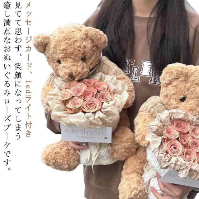 | 見てて思わず、笑顔になってしまう癒し満点なおぬいぐるみローズブーケです。【メッセージカード、ledライト付き】 布で作られているお花です。 生花のように水やりやお手入れの必要がなく、枯れる心配も虫や花粉の心配もありません。 ふわふわの愛らしいベアがどんな素敵なシーンも可愛く華やかに彩ります 大事な記念日にプレゼントとしてそのままお渡しすることも可能です。玄関やお部屋にそのまま飾って頂くだけで、ほのかな香りが楽しめるインテリアや飾りになるおしゃれな芳香剤として女性にも男性にも喜ばれるフラワーギフトです。 母の日、バレンタイン、入学式、卒業式、退職祝い、結婚式、誕生日、記念日など、ちょっとしたプレゼントにぴったりです。 | |