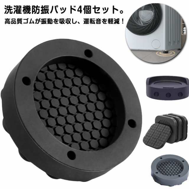 洗濯機防振パッド 4個セット 3タイプ 洗濯機用アクセサリー 防振マット 防音マット 滑り止め 防滑 かさ上げ 高さ調節 ソファー 家具 家電 ブラック 黒 グレー 無地 シンプル