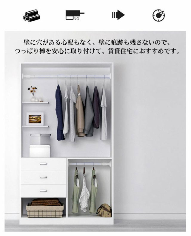 突っ張り棒 ステンレス 伸縮棒 強力 つっぱり棒 耐荷重 衣類 コート掛け 棚 収納 カーテン 極太 強い負荷 ドリル不要 クローゼット収納 押入れ 取付簡単 物干し竿 伸縮自在 お風呂 浴室 整理 カーテンロッド