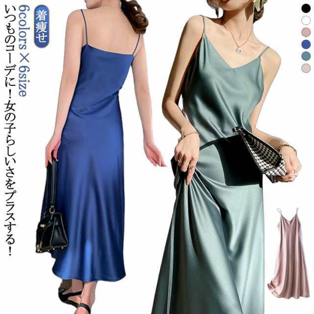 ノースリーブ レディース 重ね着 シンプル ロングワンピース キャミワンピース サテン キャミソールワンピース aライン ミモレ丈 レイヤード フォーマル フェミニン インナー フレア キャミソール 上品 きれいめ 夏 美脚 着痩せ キャミワンピース 50代 40代