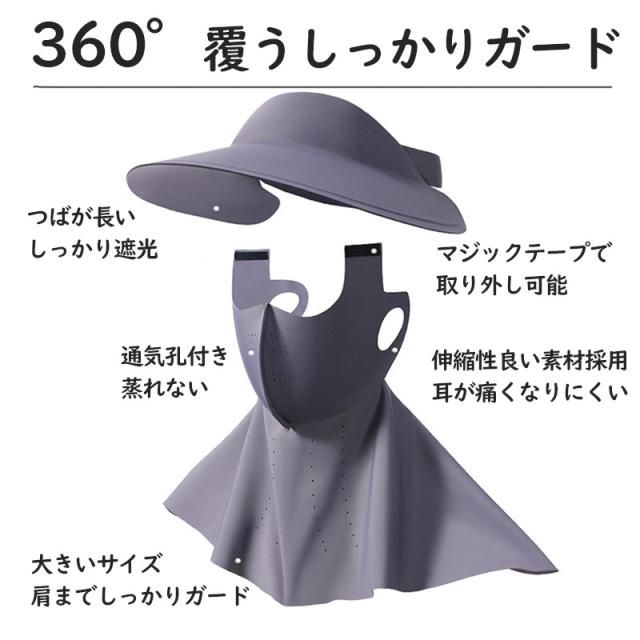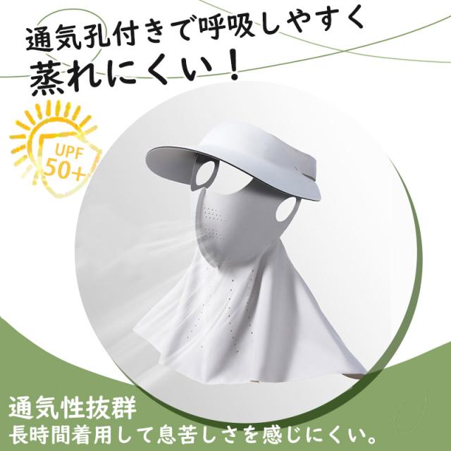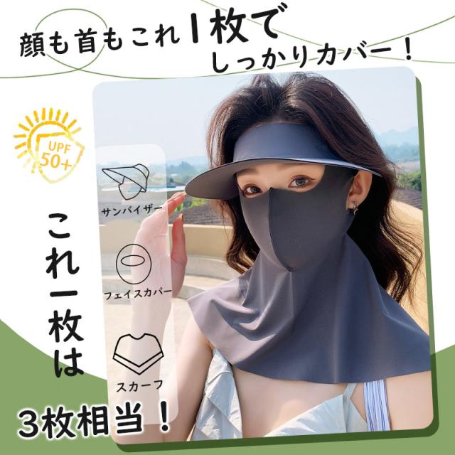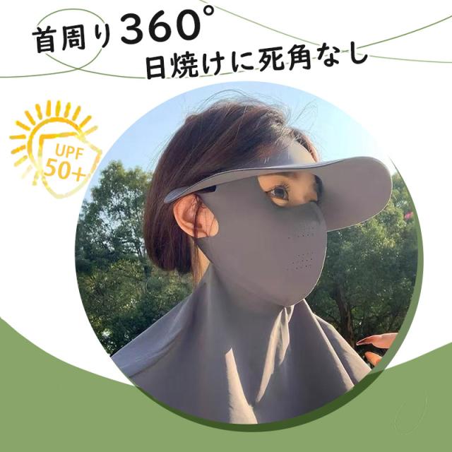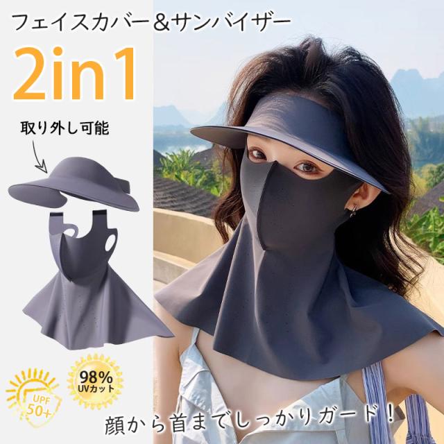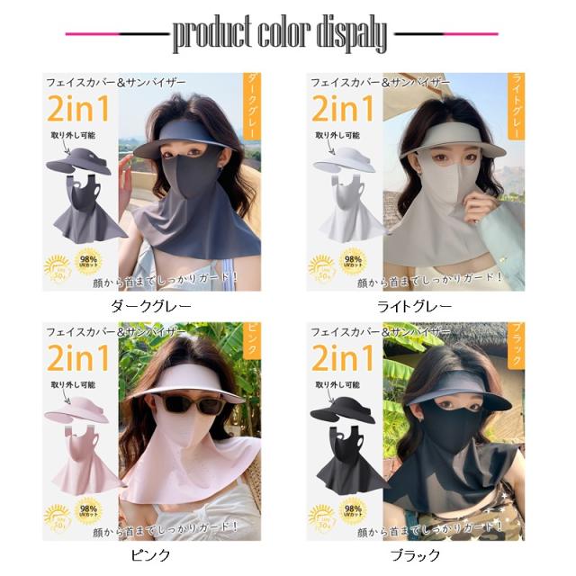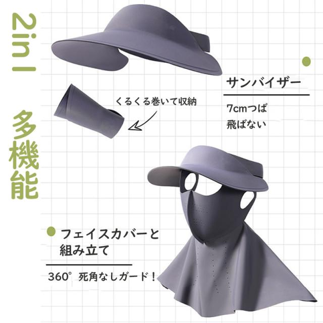 2in1フェイスカバー サンバイザー UVカットマスク ハット つば広帽子 ネックカバー ネックガード 接触冷感 ひんやり 日焼け止め 夏 紫外線対策