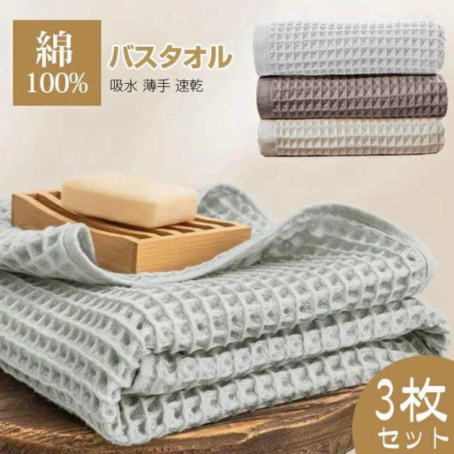 バスタオル セット 3枚セット ワッフル ワッフルタオル 綿100% コットン 60x120cm 吸水 薄手 速乾 大判 可愛い 吸水速乾 やわらか ふわふわ 小さめ 抗菌防臭 肌