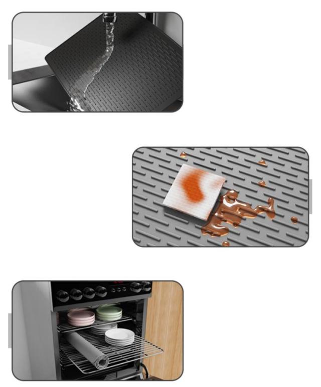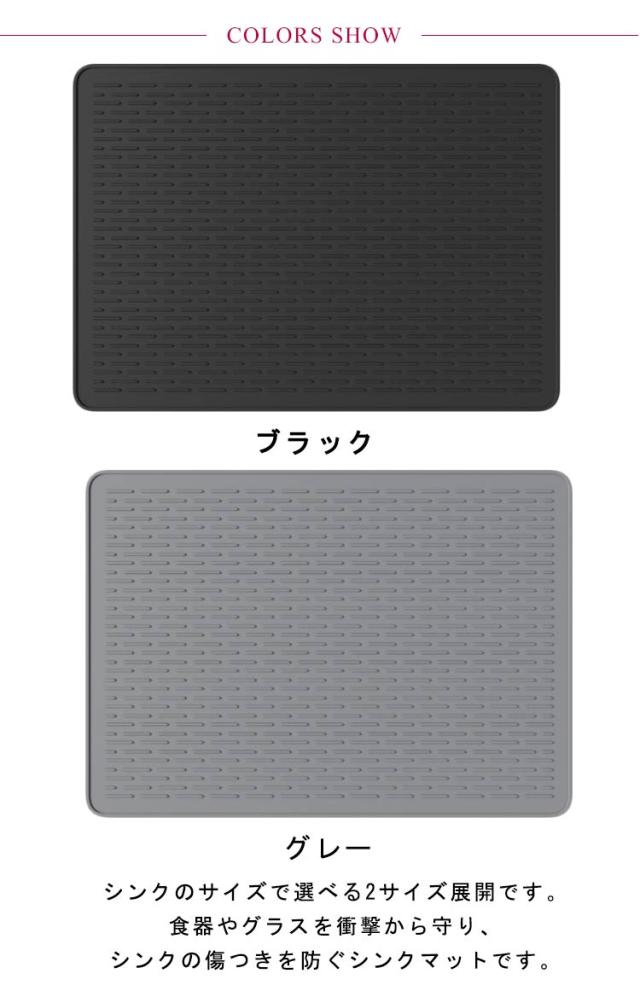 | シンクのサイズで選べる2サイズ展開です。食器やグラスを衝撃から守り、シンクの傷つきを防ぐシンクマットです。 シリコン製なので滑らず調理が楽になりました。マット上の作業もズレにくく、どこに敷いてまな板や食器の滑り止めにも使える。 作業台の上に敷き工具やパーツの滑り止め効果として重宝しています!又、コレクション棚などに敷いて安定感保持に活用しております。 手触りもサラサラしているので使っていて気持ちいいです。大切なシンクや食器をキズや衝撃から守ってくれます。 キッチンになじむ、落ち着いたシンプルなデザインです。使わないときは、丸めて収納しておくこともできます。 | |