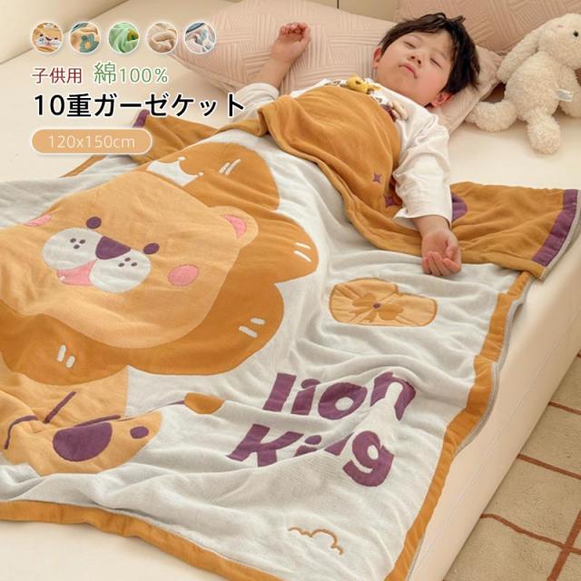 子供用 ガーゼケット 10重 綿100% コットン タオルケット ガーゼ 肌布団 肌掛け布団 吸水性 通気性 涼しい 快適 洗える 綿毛布 オールシーズン 春夏用 夏用 ふんわり 柔らかい 寝具 キッズサイズ 120×150cm